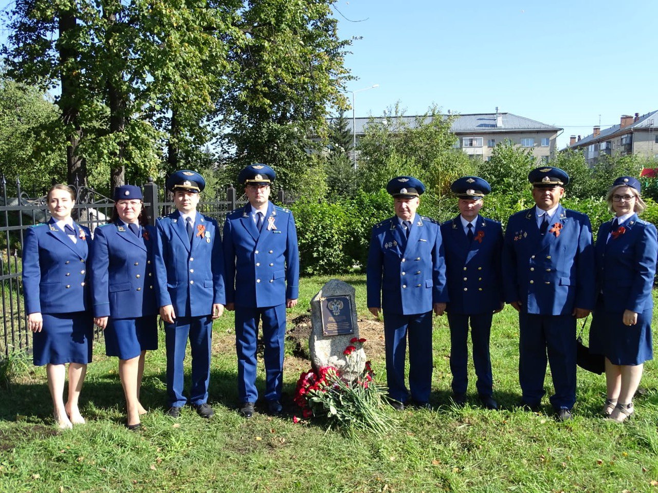 На памятном камне размещены имена ветеранов Великой Отечественной войны и тружеников тыла, которые в различные периоды трудились в органах прокуратуры: Мартьянов Пётр Семёнович; Ложкина Клавдия Георгиевна; Борисенко Владимир Ильич; Ерёменко Николай Гаврилович.